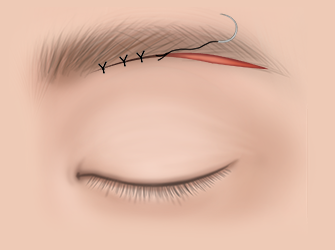 처진 눈꺼풀을 개선하기 위해 눈썹 바로 아래를 절개하여 피부를 당겨주는 수술입니다.