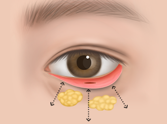 경결막 눈밑지방 재배치는 눈밑 지방을 눈물 고랑 아래로 재배치하여