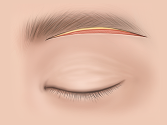 처진 눈꺼풀을 개선하기 위해 눈썹 바로 아래를 절개하여 피부를 당겨주는 수술입니다.